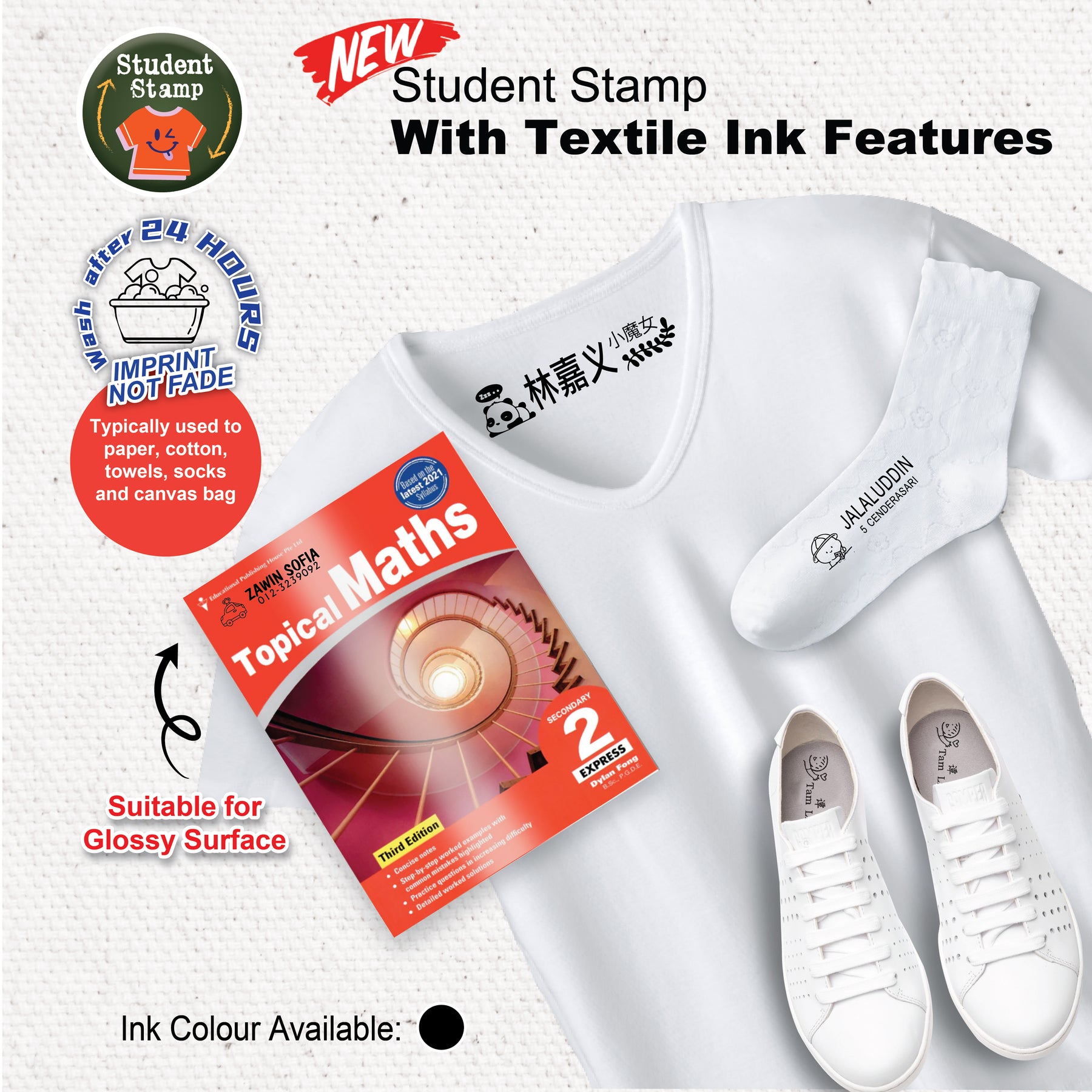 Use this stamp to label workbooks and other belongings of your child's. This stamp is made for children with a long name! Make labeling fun and quick with our student stamps!